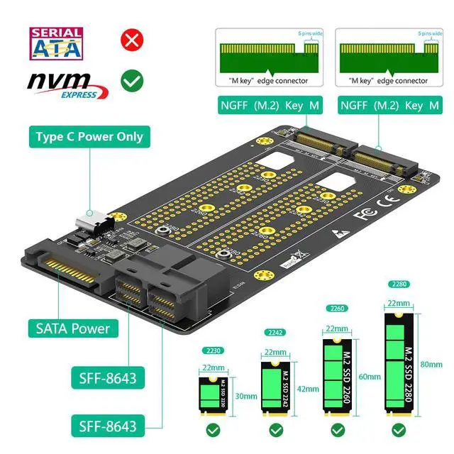 • Dual M.2 NVME SSD to Dual SFF-8643 Adapter Supports M.2 Nvme SSD In Format 2230/2242/2260/2280 Adapter Hyper Controller