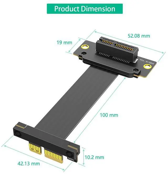 • PCI-E 5.0 1X Extension Cable Dual Vertical 90° Direction for 1U/2U/ATX/BTX Chassis Supports High Speed PCI-E 1X 4X 8X 16X Card