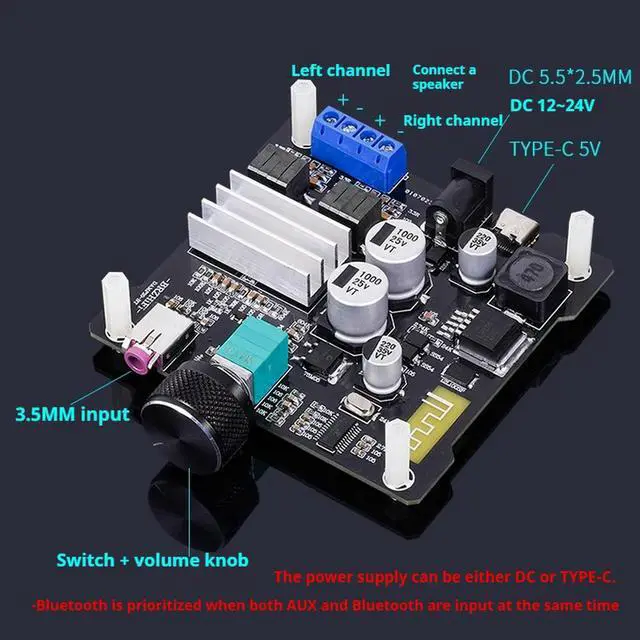 • TPA3116D2 Bluetooth 5.0 Class D Digital Amplifier Board 50W+50W Stereo Power Amplifier Module DC12V-24V