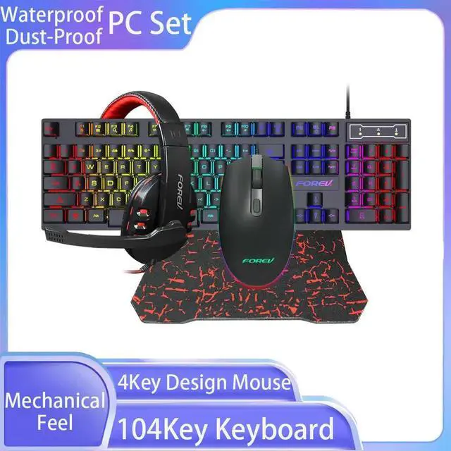 • RGB USB Wired Keyboard Mouse Headphones Pad 104Key Keyboard 4Key Design Mouse Mechanical Feel Waterproof Dust-Proof Computer Set
