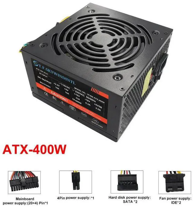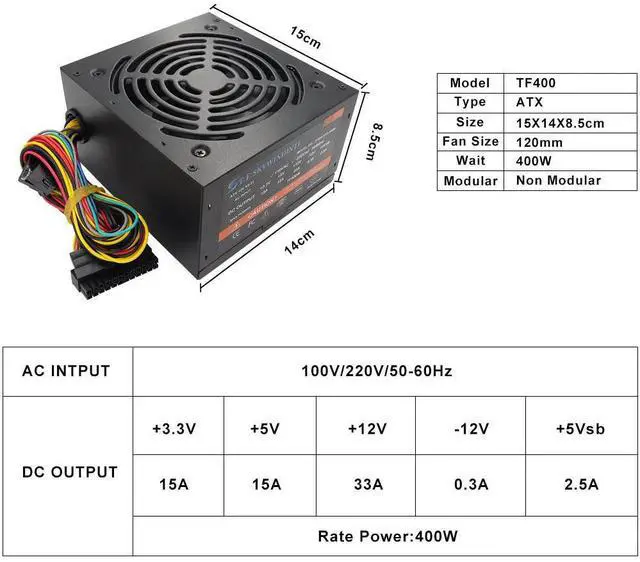 • 400W Power Supply ATX Active PFC PC Non-Modular 110V/220V 50-60HZ 120MM Silent Fan High Efficiency Power Supply Energy Saving