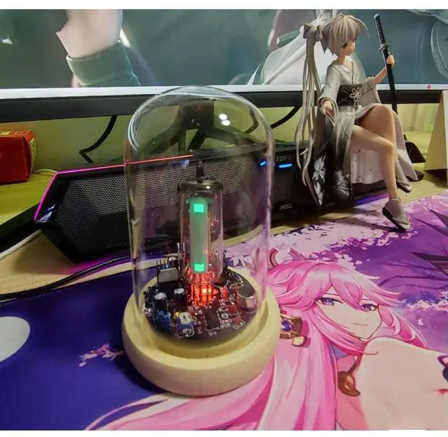 • 6E2 Cat's Eye Electronic Tube Pickup Music Monitor Cyberpunk Music Rhythm Light with Dust Cover