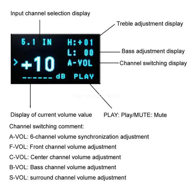 • F11 M62446 Preamp 5.1 Fully Independent Remote Control 6 Channel With OLED Display