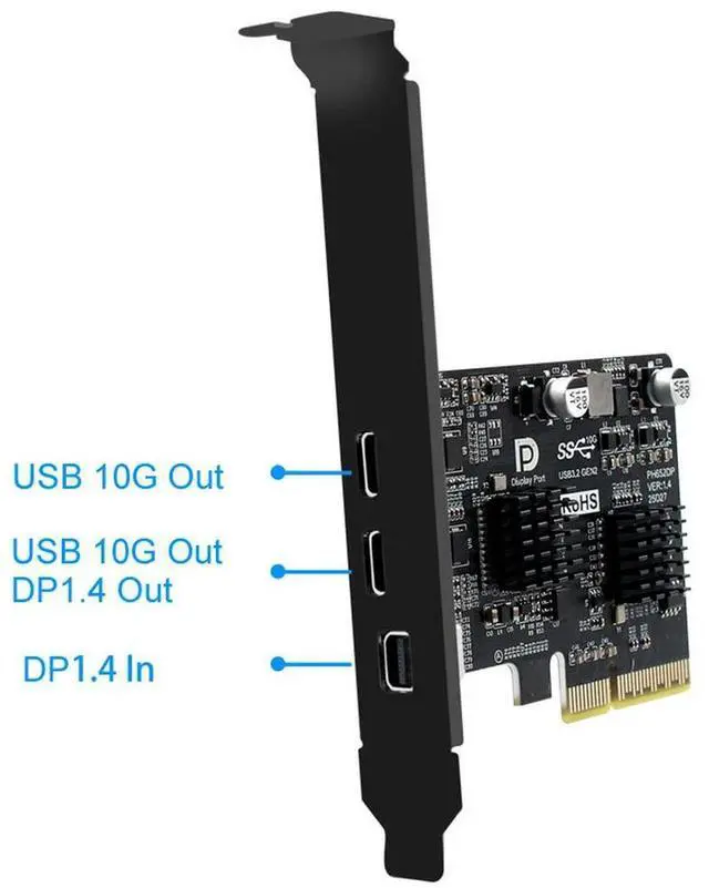 PCI-E X4 to DP Input TYPE-C Output Video Expansion Card Usb3.2 10g+DP1.4 Card 10GPS Support Both Full Tower/Mini-Tower Chassis