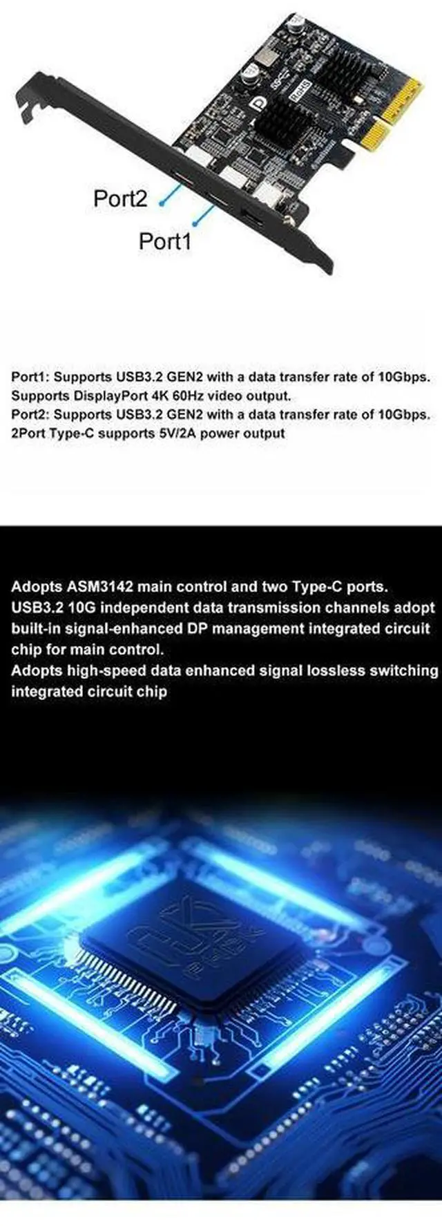 • PCI-E X4 to DP Input TYPE-C Output Video Expansion Card Usb3.2 10g+DP1.4 Card 10GPS Support Both Full Tower/Mini-Tower Chassis