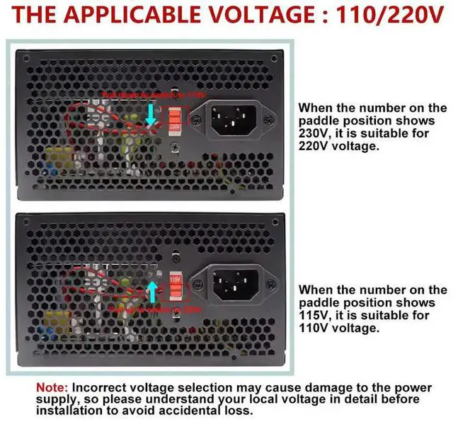 • 500w Gaming Power Supply ARGB Non-modular Ultra-Quiet PSU Gold Standard ATX Form Factor Full Voltage 110/220V 20+4Pin for PC