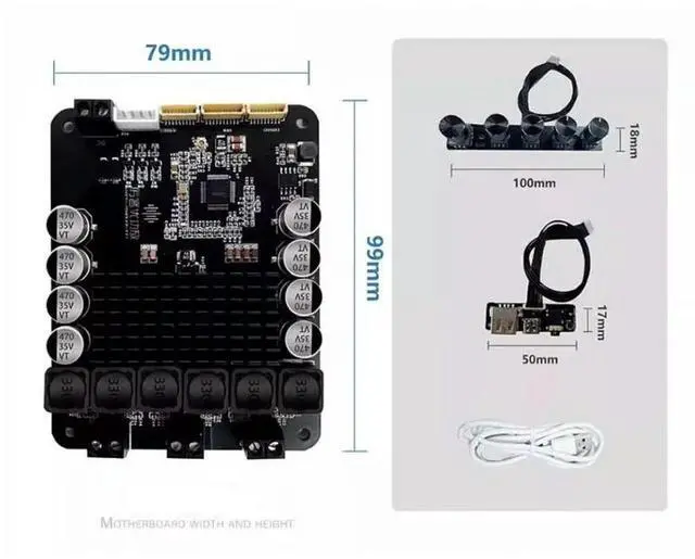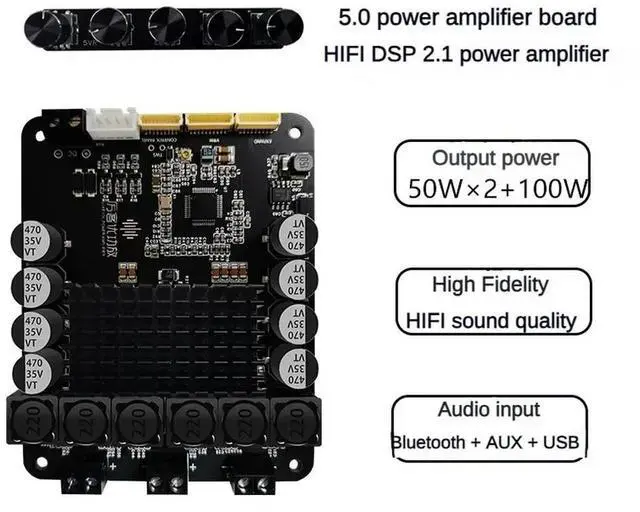 • Dsp2.1 Bluetooth 5.0 Stereo Power Amplifier Module 50W*2+100W Subwoofer Audio Board with Heavy Bass Five Knobs 200w DC24V