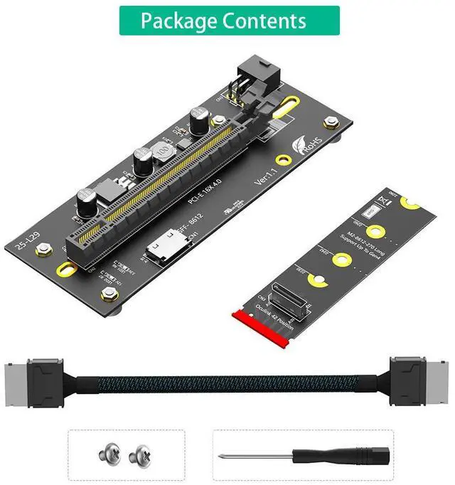 • M.2 M-Key 2242/2260/2280 to PCI-e 4.0 X16 with Oculink SFF-8612/8611 Extension Cable As External Graphics Card PWR from ATX 6PIN