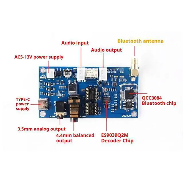 • QCC3084 Bluetooth 5.4 Wireless Receiving ES9039 DAC Decode With 3.5/4.4mm output NE5532 Dual OP AMP Support LDAC/APTX