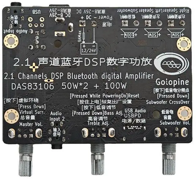 • Bluetooth 2.1 DSP Power Amplifier 2x50W+100W Subwoofer Amplifiers Three Channel Independent 31 Segment EQ Amplificador