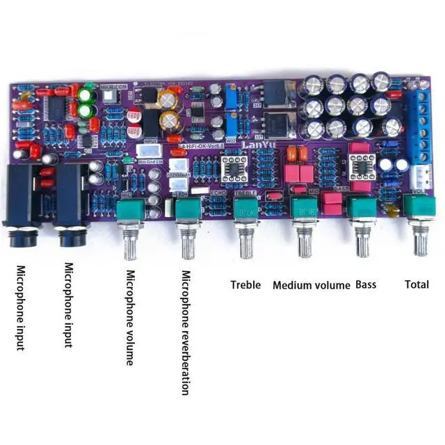 • HiFi Class A Preamp Tone Board Microphone Input AD847 OP AMP Audio Preamplifier Board AC 12V-18V
