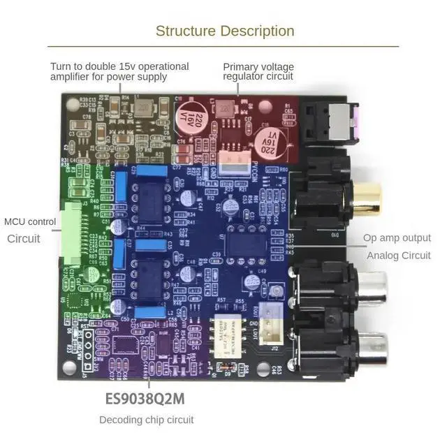 • ES9038Q2M Decoding Board QCC3084 Bluetooth 5.4 Fiber Coaxial Input Decoding Board 24bit 192K with Antenna and Key Plate