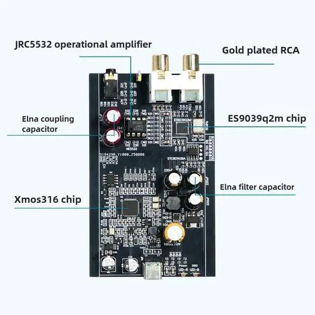 • HIFI ES9039Q2M Decoder XMOS XU316 Digital Interface USB Audio DAC DSD512 768K