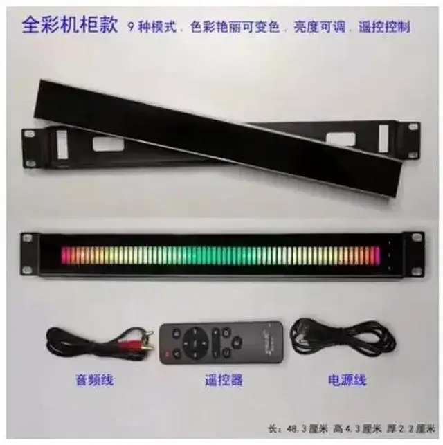 • RGB Cabinet 1U Music Rhythm Light Voice Control Line Control Level Indicator Spectrum Light with Remote Control