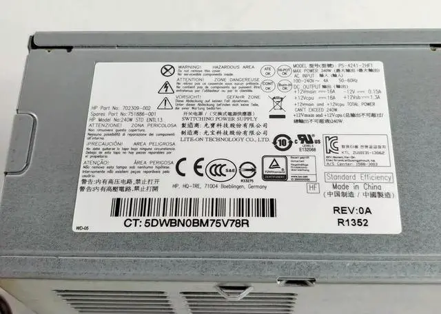 • For EliteDesk 800 G1 SFF 6 Pin 240W Desktop Power Supply 702309-002-