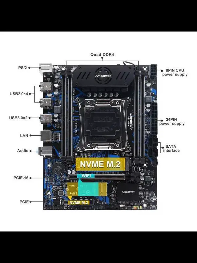 • X99 Motherboard Supports LGA 2011-3 Xeon E5 V3&V4 CPU Dual Channel DDR4 RAM NVMe M.2 128GB SATA USB Motherboard
