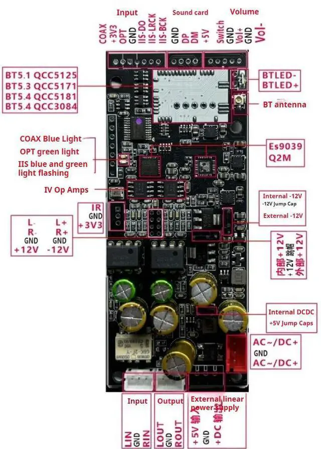 • ES9039Q2M DAC Decode QCC5181 Bluetooth 5.4 Wireless Receiving Board Dual NE5532 OP AMP LDAC/APTX 24bit/96Khz