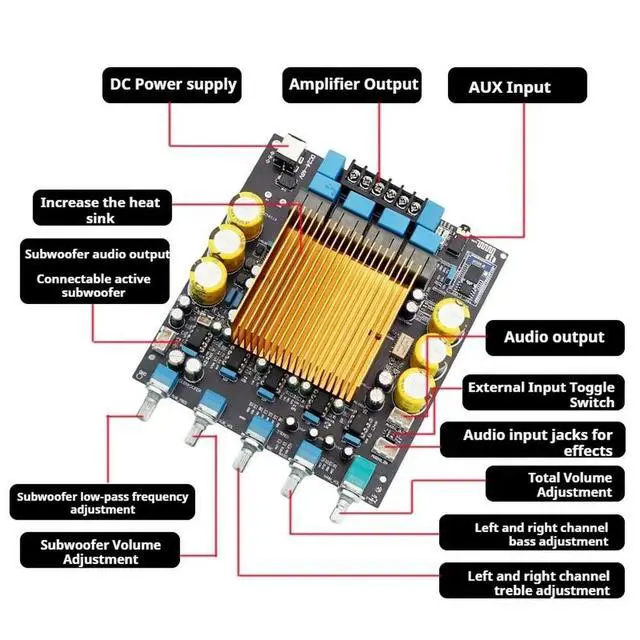 • TPA3255*2+QCC3084 Bluetooth 5.4 HIFI 2.1 Subwoofer Amplifier Board 300W*2+600W with PCM5102A Decode 96K LDAC 24V-48V