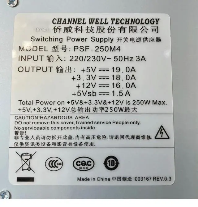• For CWT PSF-250M4 250W Security Recorder 8SATA Power Supply-