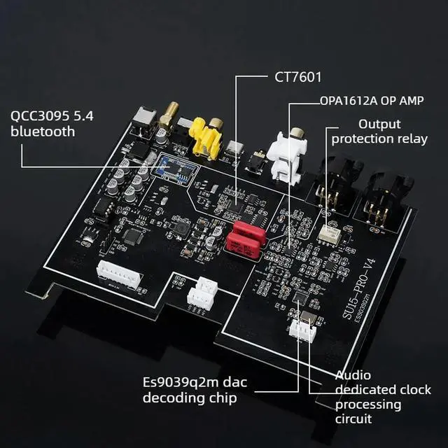 • HIFI SU15PRO ES9039Q2M QCC3095 Bluetooth 5.4 Coaxial Optical Fiber Input Decoder XLR Balanced Audio Output DAC DC12V