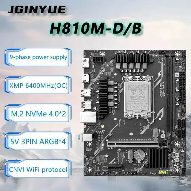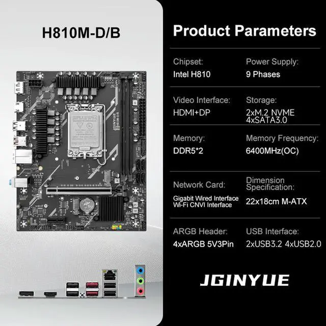 • JGINYUE H810 Motherboard LGA1851 Dual-channel DDR5 Supports 225F/230F/245K/245KF Core Ultra 200 Series Processors