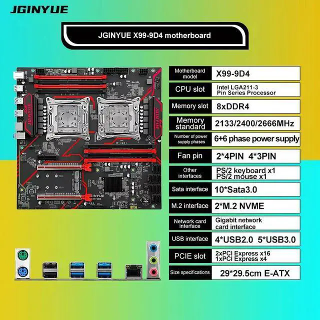 • X99 Dual Motherboard CPU LGA 2011-3 Supports Xeon E5 V3 V4 CPU DDR4 Memory Eight Channels Dual X99-9D4 Motherboard For PC
