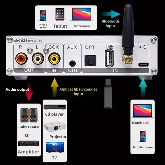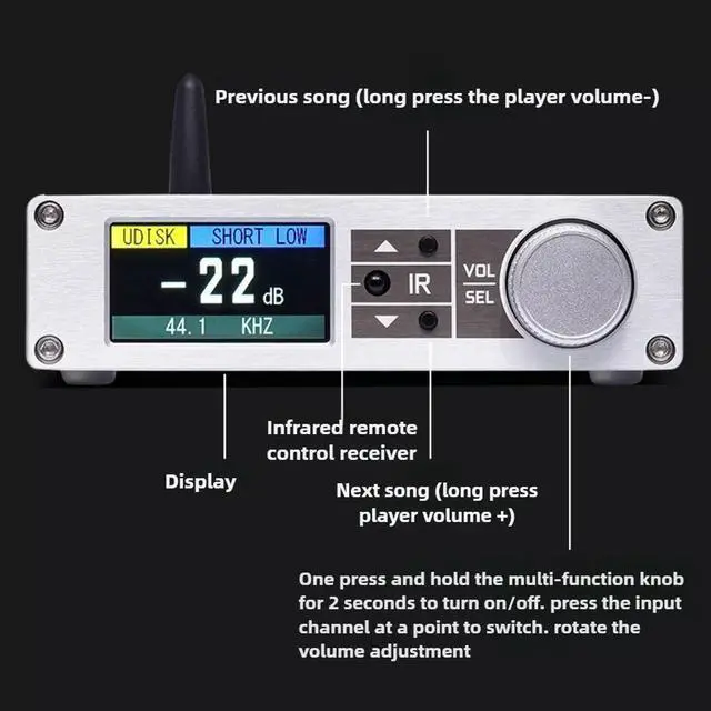• HIFI AK4493 +QCC3084 DAC Decoder Bluetooth 5.4 Coaxial Fiber USB Input Audiophile Earphone Amplifier Player