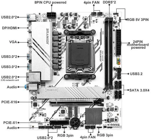 B650M PRO Motherboard Ryzen 9000/8000/7000 Series Processors AM5 DDR5 PCIe 4.0 M.2 SATA 6Gb/s USB 3.2 Gen 2 HDMI Desktop