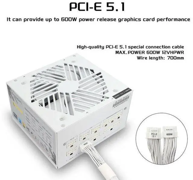 • 850W Power Supply Fully Modular PFC Active PCIE 5.0 80 PLUS Gold 100-240V Power Supply for Gaming Desktops White