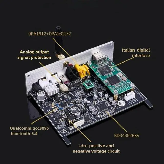 • BD34352 +QCC3095 Bluetooth 5.4 Desktop DAC Headphone Amplifier USB Coaxial fiber Input OPA1612 OP AMP DC12V SU9MAX