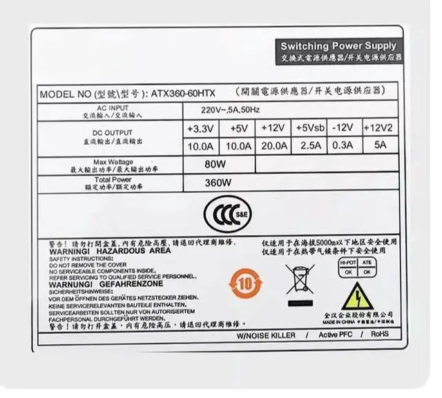 • For ATX360-60HTX 360W Power Supply For All-In-One Computers-