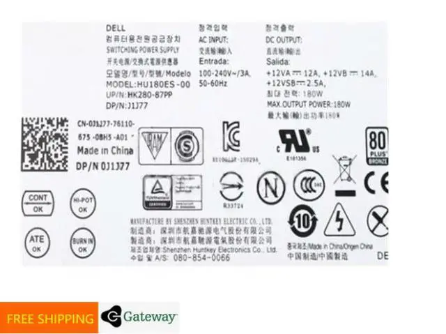 • For Inspiron 3656 Optiplex 3040 5040 SFF HU180ES-00 180W Power Supply J1J77