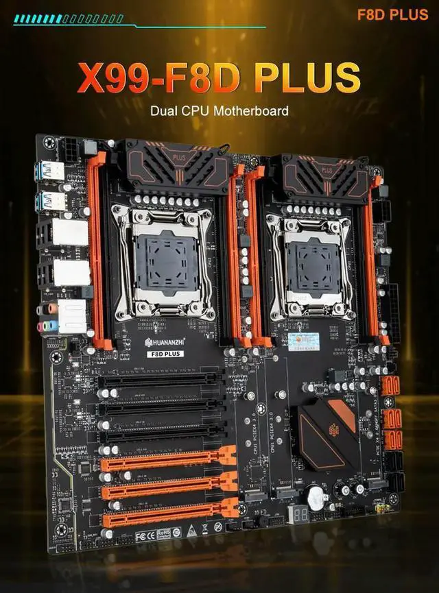 • X99-F8D-PLUS Motherboard Dual CPU LGA 2011-3 E5 V3 DDR4 RECC 512GB M.2 NVME NGFF USB3.0 E-ATX Server
