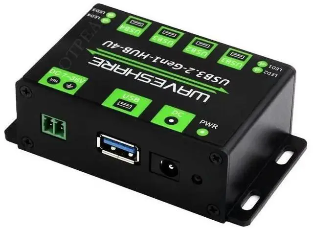 • Industrial USB HUB USB3.2 Gen1 One-To-4U Onboard 7~36V DC power port For Multi Systems