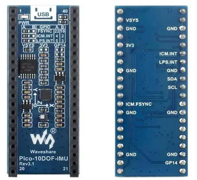 • 10-DOF IMU Sensor Module for Pi Pico onboard ICM20948 and LPS22HB chip
