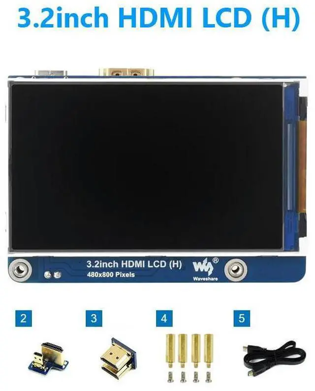 Waveshare 3.2 inch HDMI LCD IPS Display 480×800 For Pi5 / PI4 /4B / 3B / PI Zero 2W / Supports