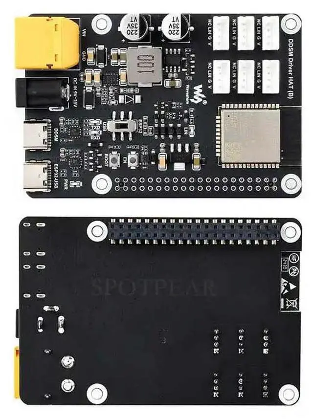 • ESP32 DDSM Motor Driver HAT For Direct Drive Servo Hub Motors For Pi