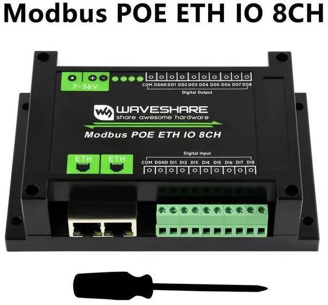 • Industrial Grade ETH Ethernet 8-Channel Relay Module, Modbus, PoE Power Supply