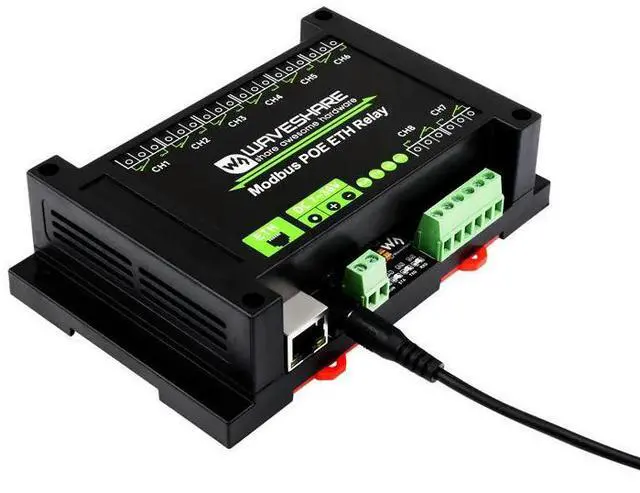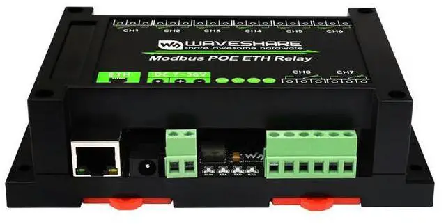 • Industrial Grade 8-Ch Ethernet Relay Module Ethernet PoE Port Communication Modbus Protocol PoE Power Supply Waveshare