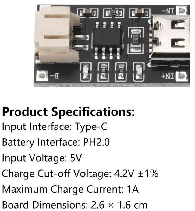 • TP4056 3.7V 1A Lithium Charging Module PH2.0 Terminal Interface Charging Protection Board Type-C Interface