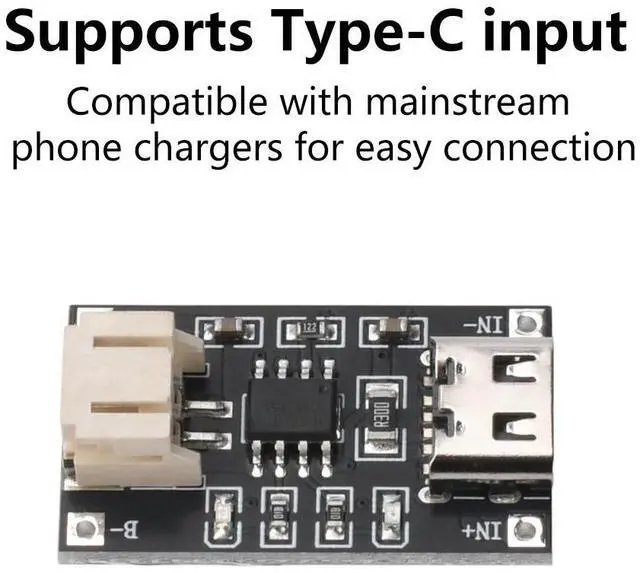TP4056 3.7V 1A Lithium Charging Module PH2.0 Terminal Interface Charging Protection Board Type-C Interface