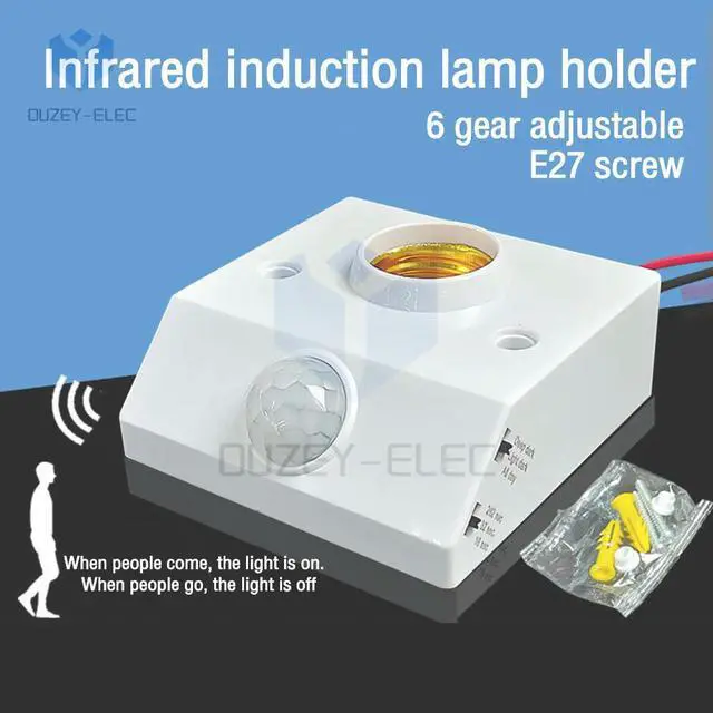 • Automatic Human Body Infrared IR Sensor Lamp Holder LED Light E27 Base PIR Motion Detector Wall Lamp Holder Socket AC 110-240V