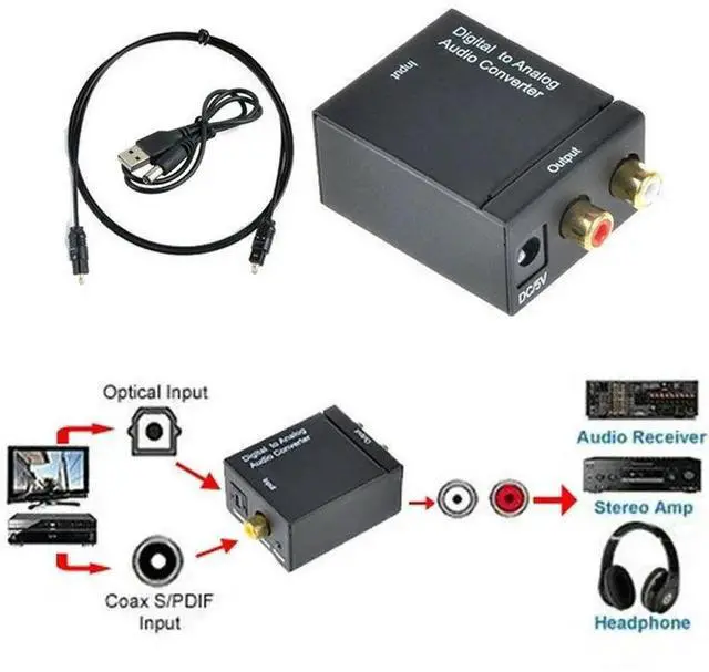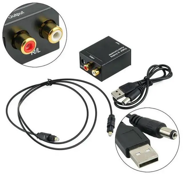 • Digital Optical Toslink SPDIF Coax To Analog RCA Audio Converter Adapter