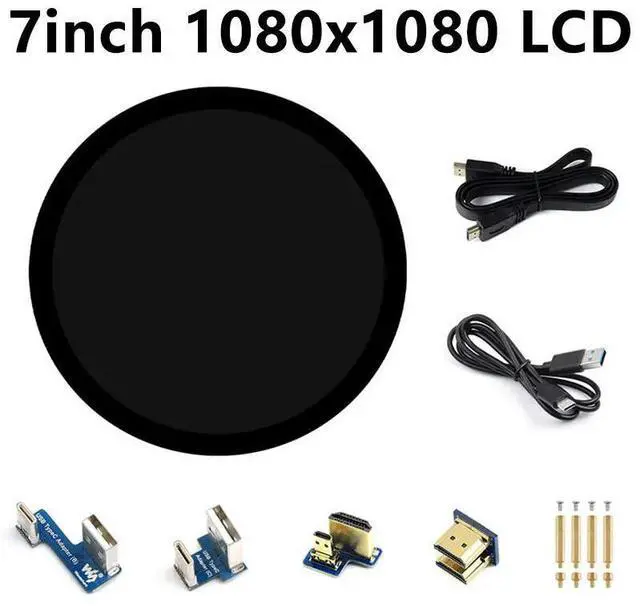 • 7inch Round LCD HDMI Capacitive 7 inch Touchscreen Display 1080x1080 For Pi/Jetson Nano/mini PC