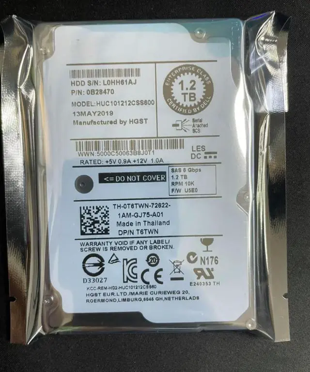 T6TWN FOR HGST 1.2TB 10K 2.5" SAS 6.0GB /s Enterprise HDD HUC101212CSS600 hard drive 0B28470 0T6TWN