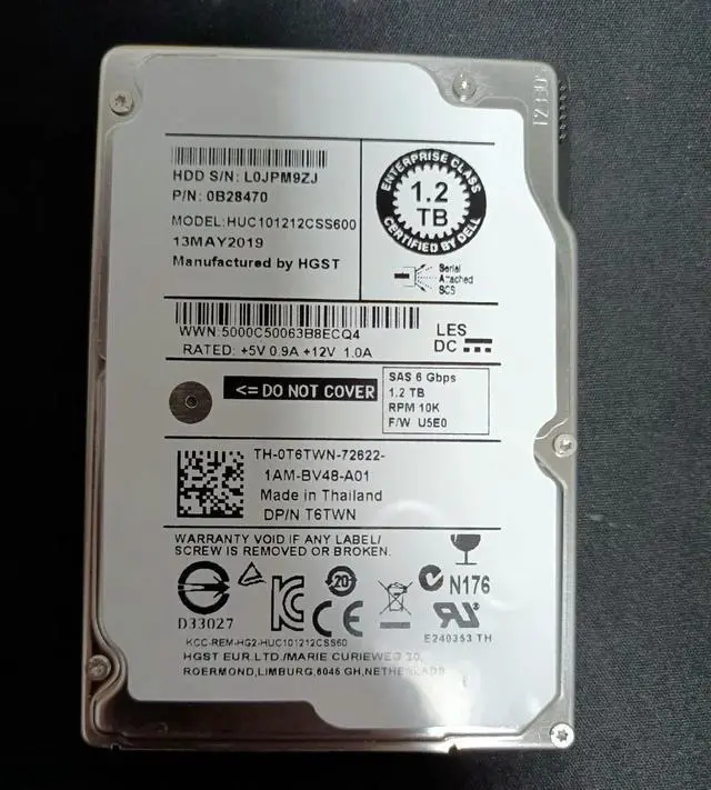 T6TWN FOR HGST 1.2TB 10K 2.5" SAS 6.0GB/s Enterprise HDD HUC101212CSS600 hard drive 0B28470 0T6TWN