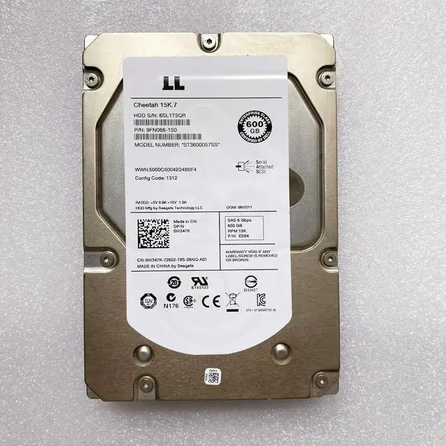 • 0W347K W347K 9FN066-150 ST3600057SS 600GB 15000 RPM 16MB Cache SAS 6Gb/s 3.5" Internal Enterprise Hard Drive