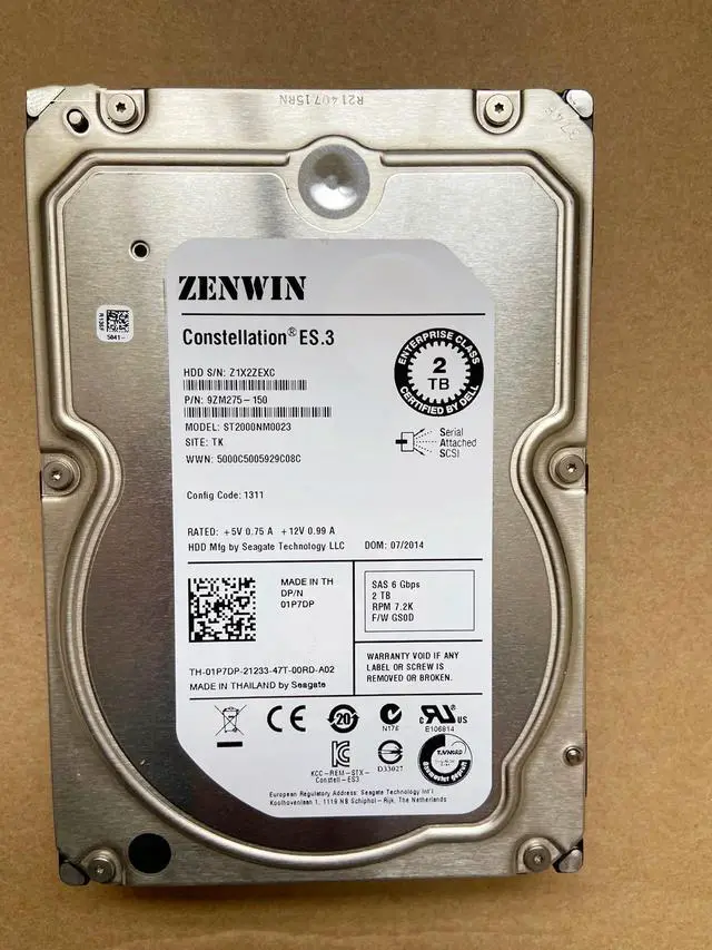 • 1P7DP 01P7DP 2TB 7.2K 6Gbs 3.5 SAS 2T Drive ST2000NM0023 HDD Hard Drive FOR Server