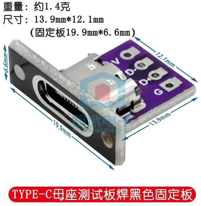 • 10pcs USB 3.1 Type C Socket With Screw fixing plate Type-C USB Jack 3.1 Type-C 2Pin 4Pin Female Connector Jack Charging Port