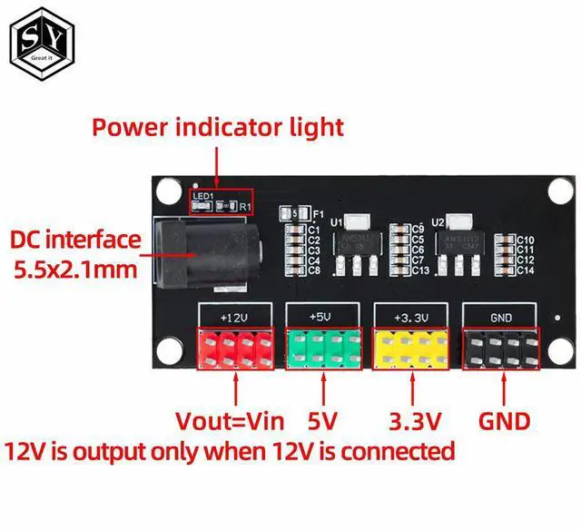• Power module 3.3v 5v 12v multi-channel output voltage conversion module DC-DC12V to 3.3v 5v 12v